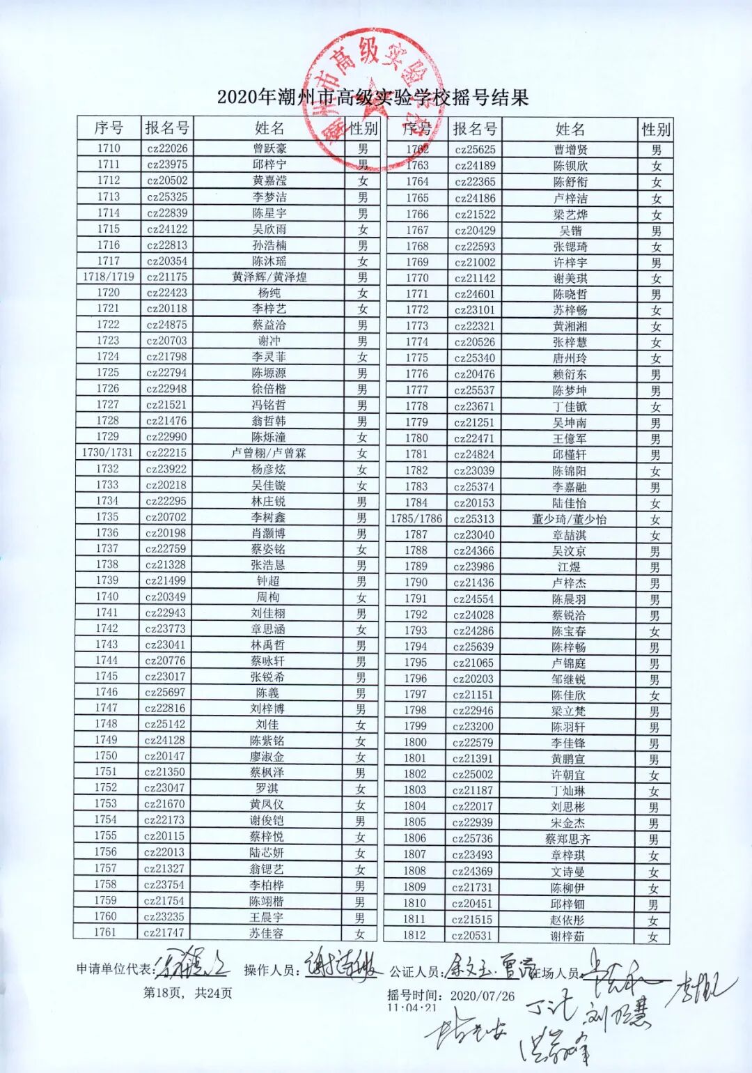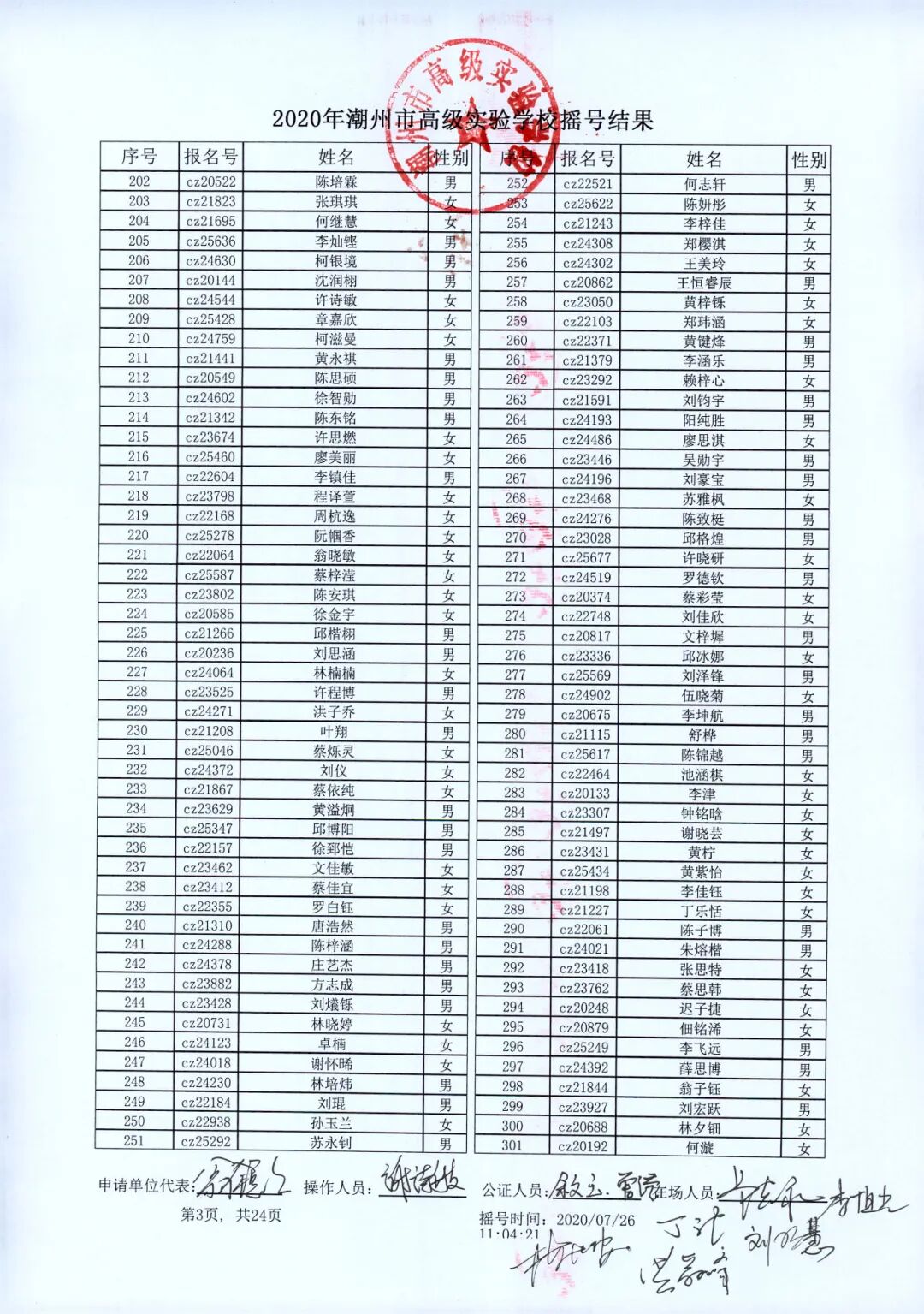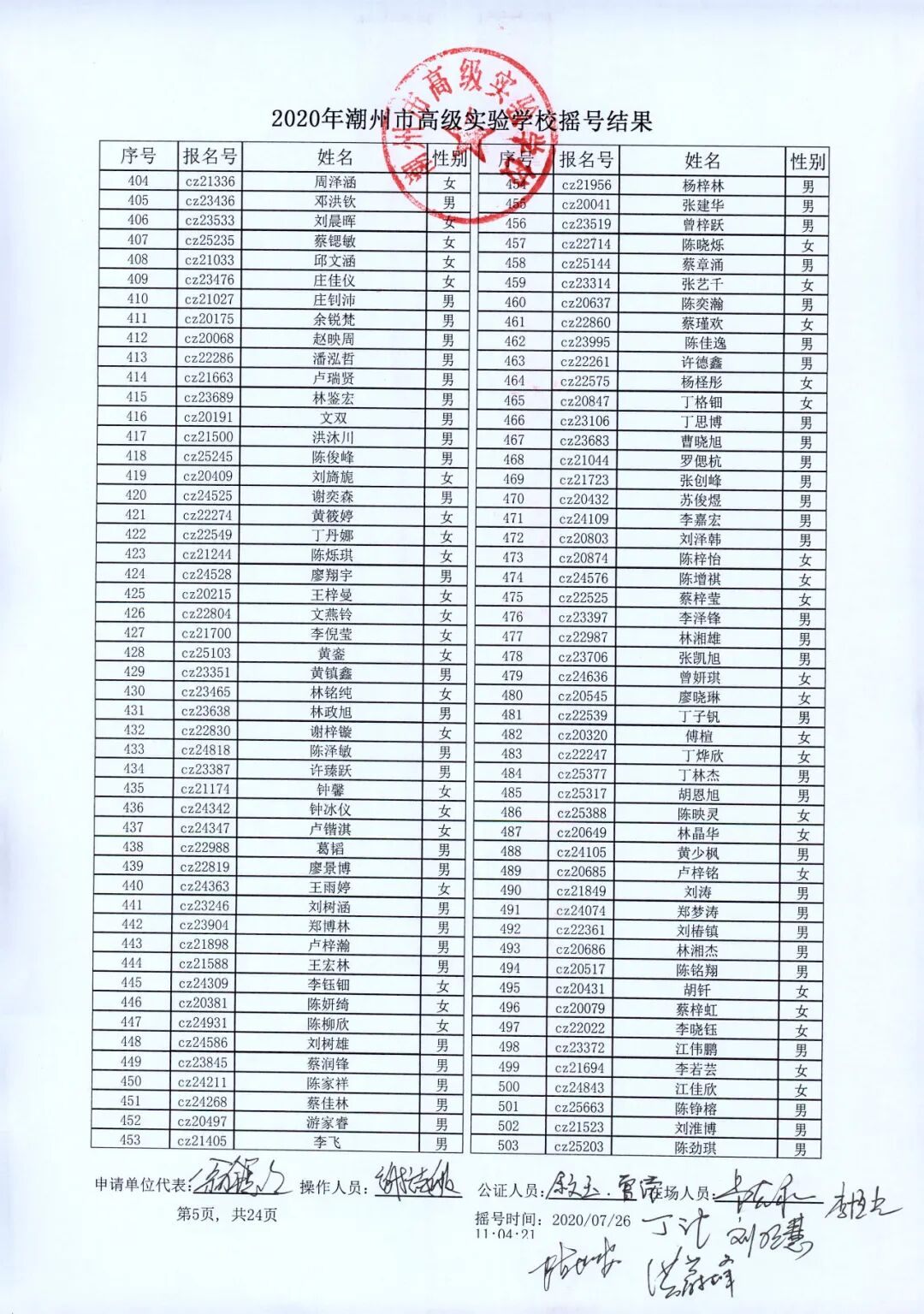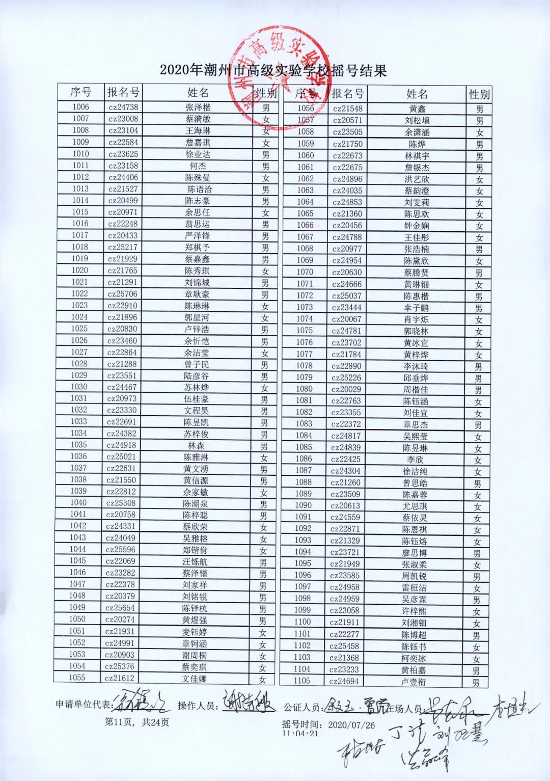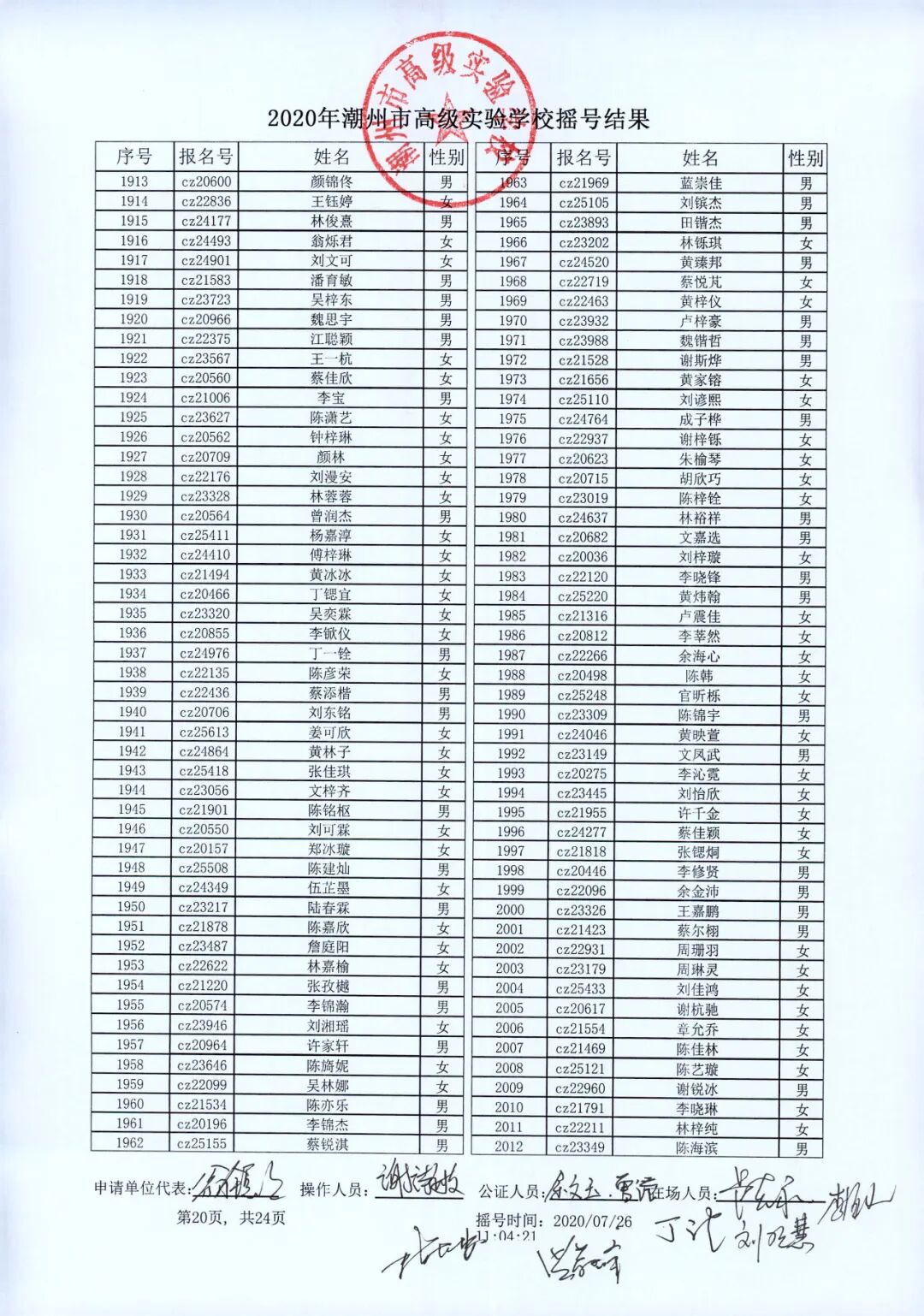 潮州市高级实验学校2020年摇号招生结果公布暨新生注册通知
