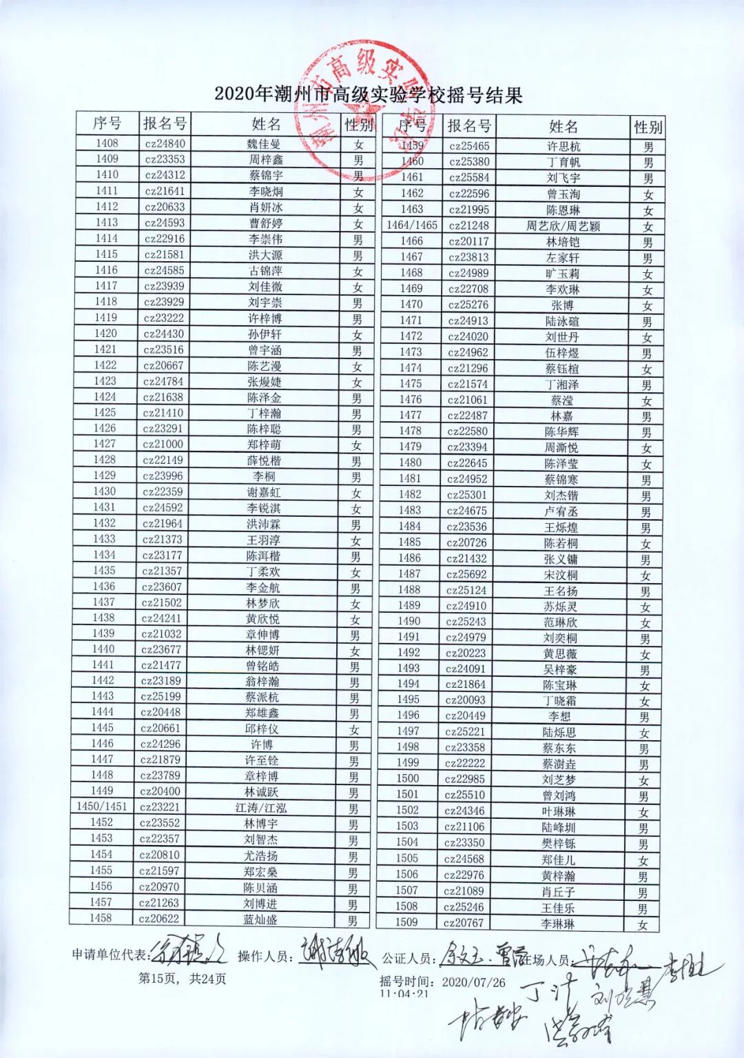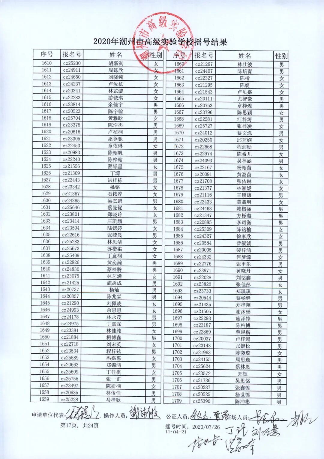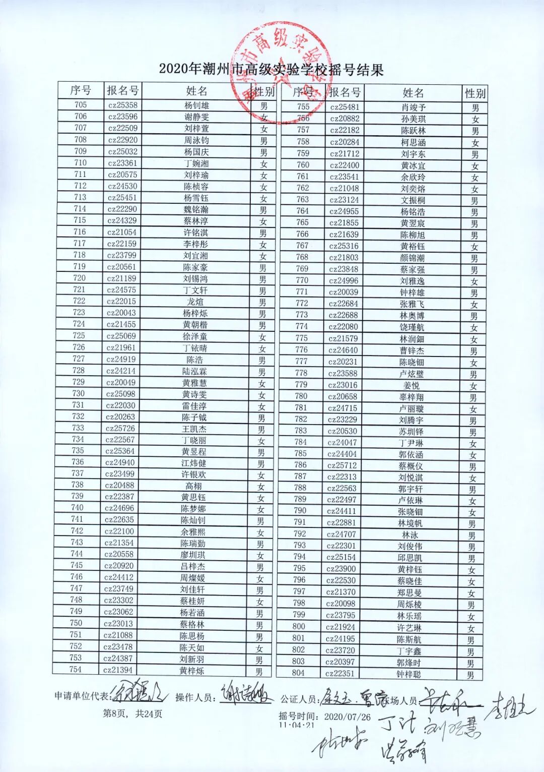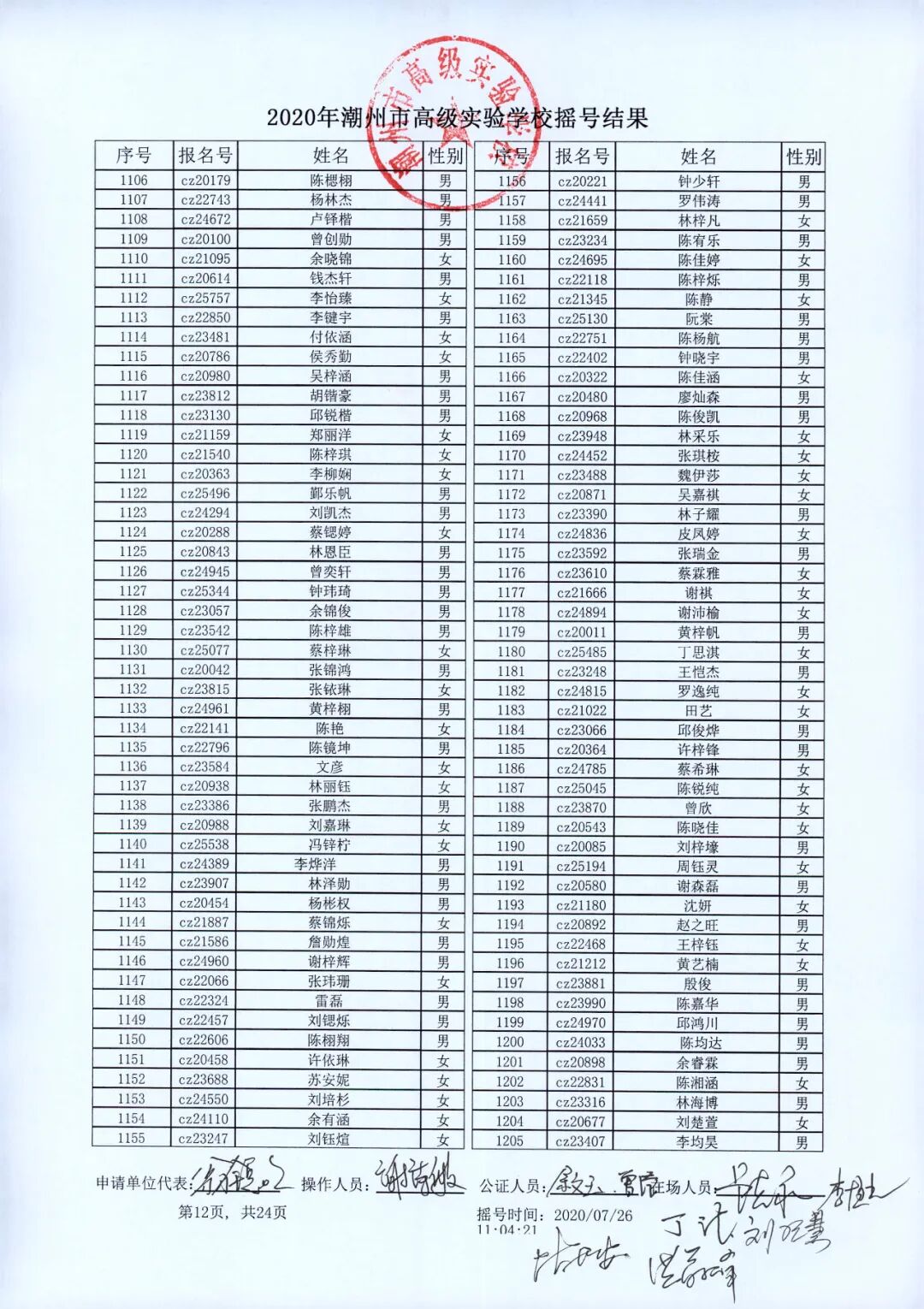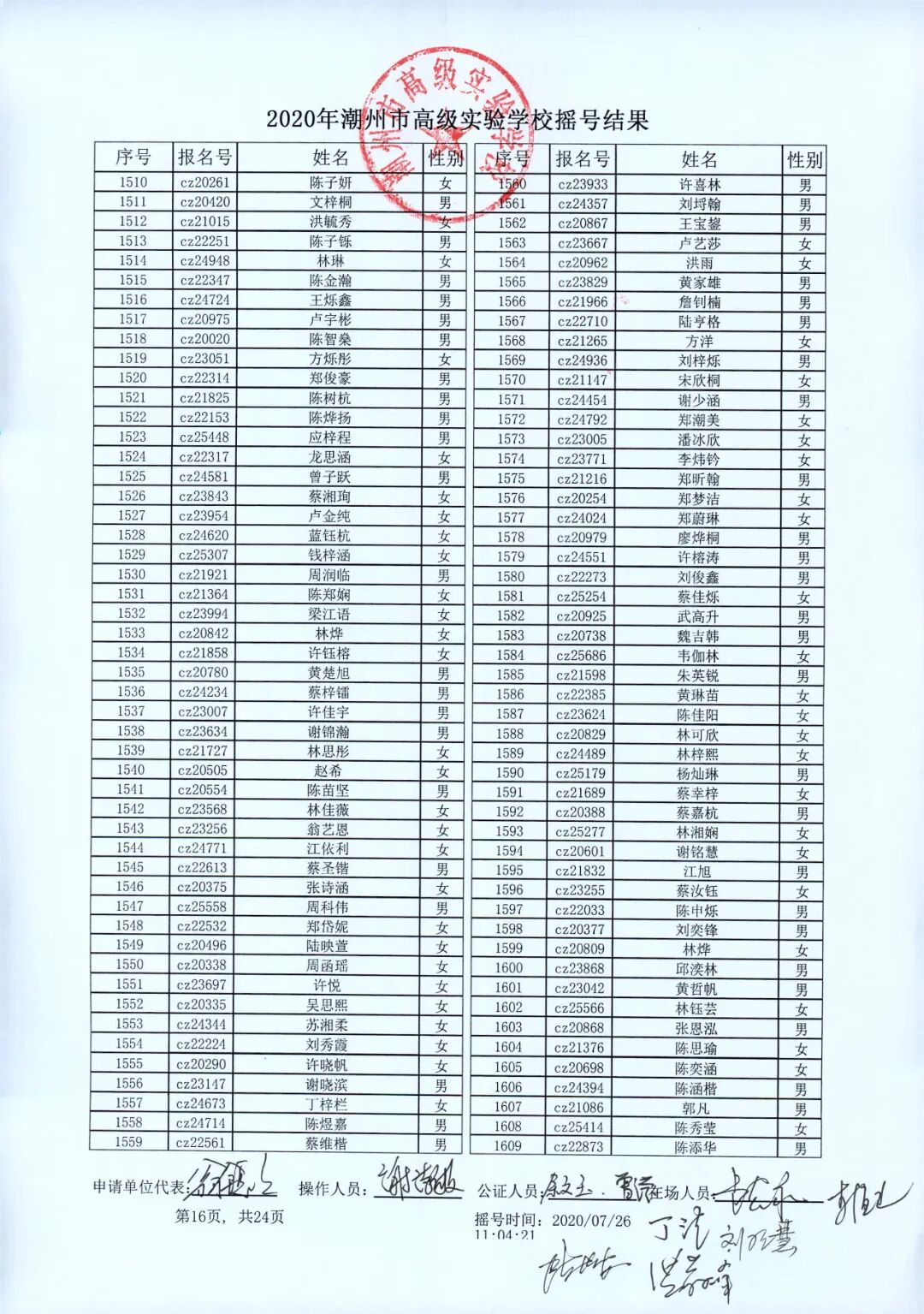 潮州市高级实验学校2020年摇号招生结果公布暨新生注册通知